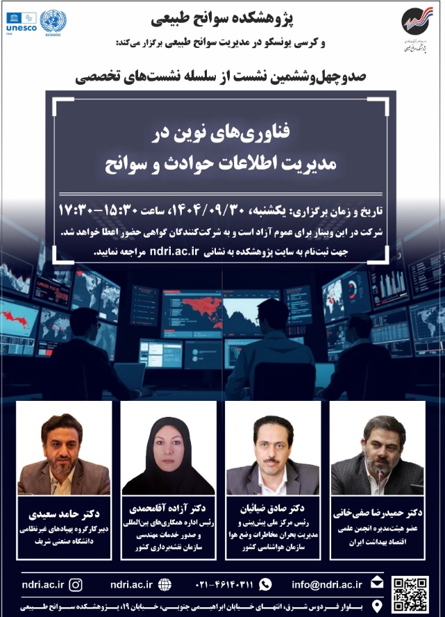 نشست فن آوری نوین در مدیریت اطلاعات حوادث وسوانح ۳۰ آذر ۱۴۰۴ | ۱۲:۰۴ کد : ۵۷۱۴۹ اطلاعیه ارسال به دیگران نام شما ایمیل شما ایمیل دریافتکننده ارسال انصراف تعداد بازدید:۵۵ دعوتنامه نشست فن آوری نوین در مدیریت اطلاعات حوادث وسوانح
