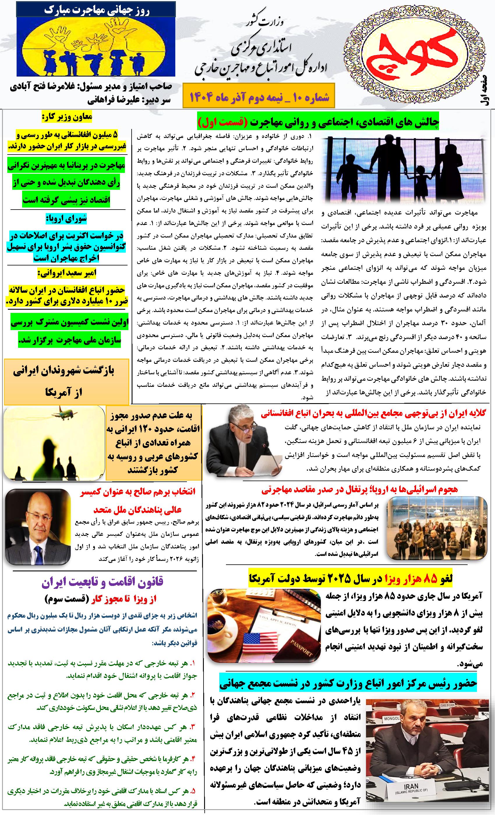 دهمین شماره نشریه کوچ ۰۳ دی ۱۴۰۴ | ۰۹:۲۱ کد : ۵۷۵۲۰ اطلاعیه ارسال به دیگران نام شما ایمیل شما ایمیل دریافتکننده ارسال انصراف تعداد بازدید:۱۰۵ دهممین شماره نشریه کوچ، توسط دفتر امور اتباع و مهاجرین خارجی استان مرکزی منتشر گردید.