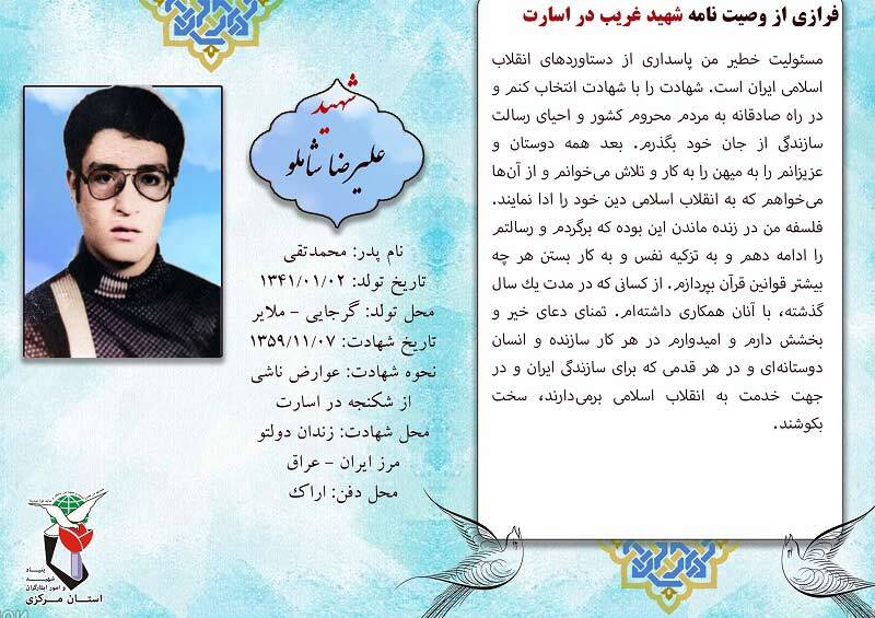 فرازی از وصیت نامه شهدا ۰۵ بهمن ۱۴۰۴ | ۰۹:۴۵ کد : ۵۷۶۸۳ اطلاعیه ارسال به دیگران نام شما ایمیل شما ایمیل دریافتکننده ارسال انصراف تعداد بازدید:۲۰۳ فرازی از وصیت نامه شهدا فرازی از وصیت نامه شهید بزرگوار علیرضا شاملو :